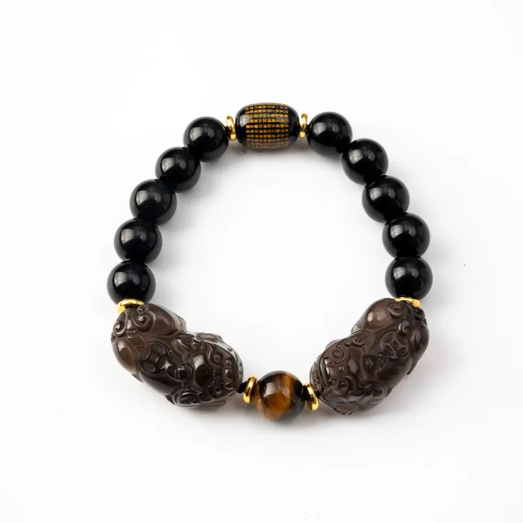 Each bracelet in this series blends ancient symbolism with modern craftsmanship, using premium materials like jade for harmony and prosperity, obsidian for grounding and protection, and cinnabar for vitality and luck. The intricately carved Pi Xiu charms pay homage to centuries of cultural reverence, transforming this mythical creature into a wearable blessing.