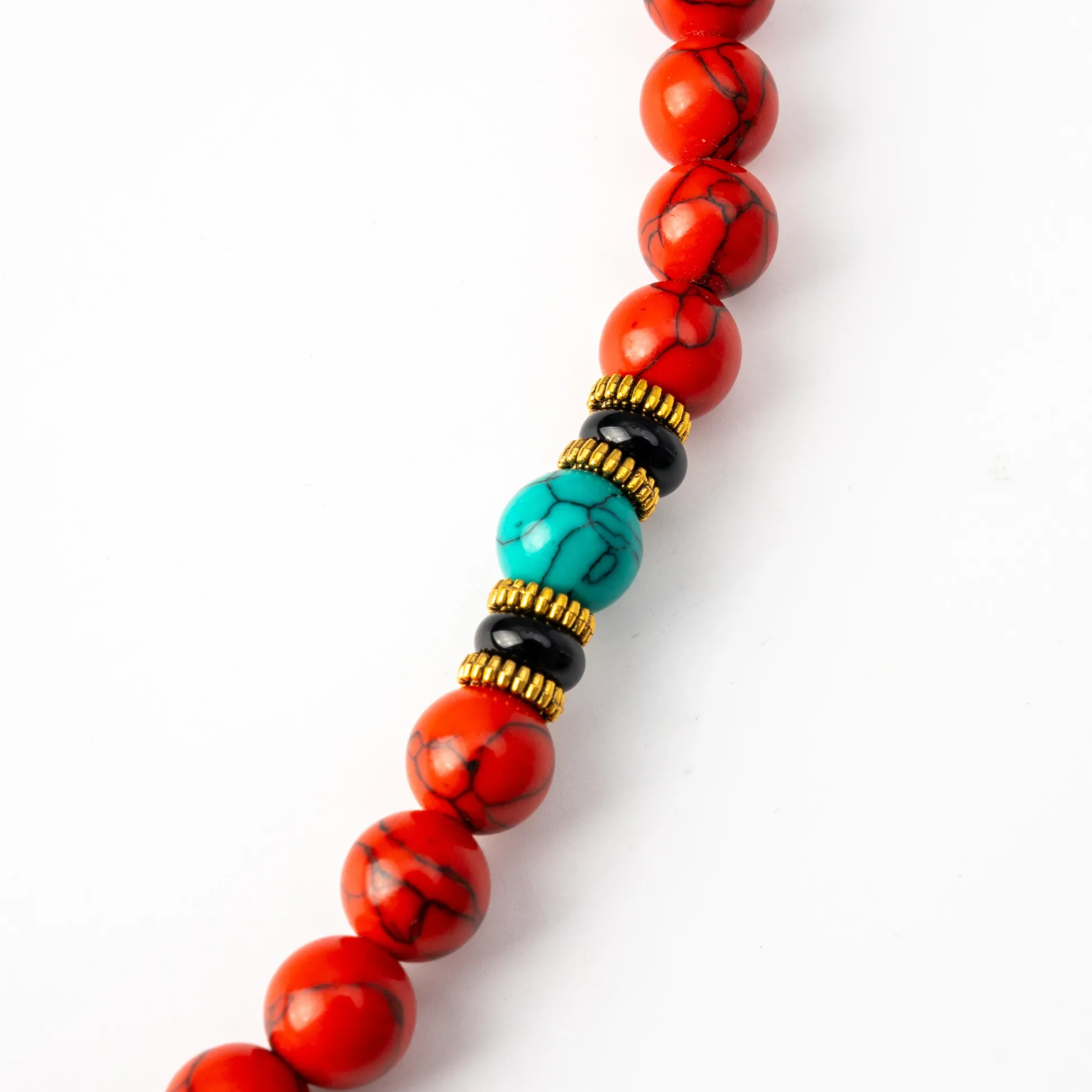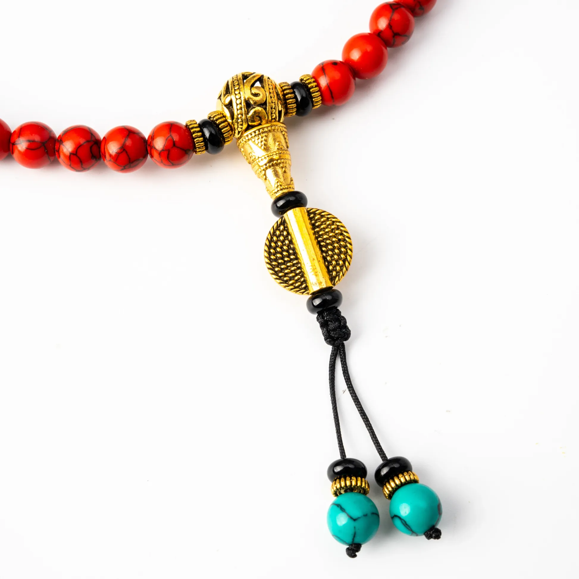 Embrace the Crimson Turquoise Meditation Mala as both a timeless accessory and a meaningful tool for mindfulness, protection, and spiritual growth.