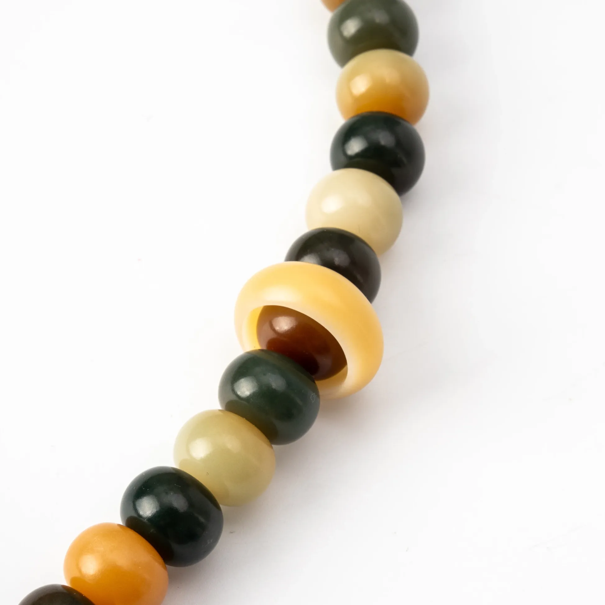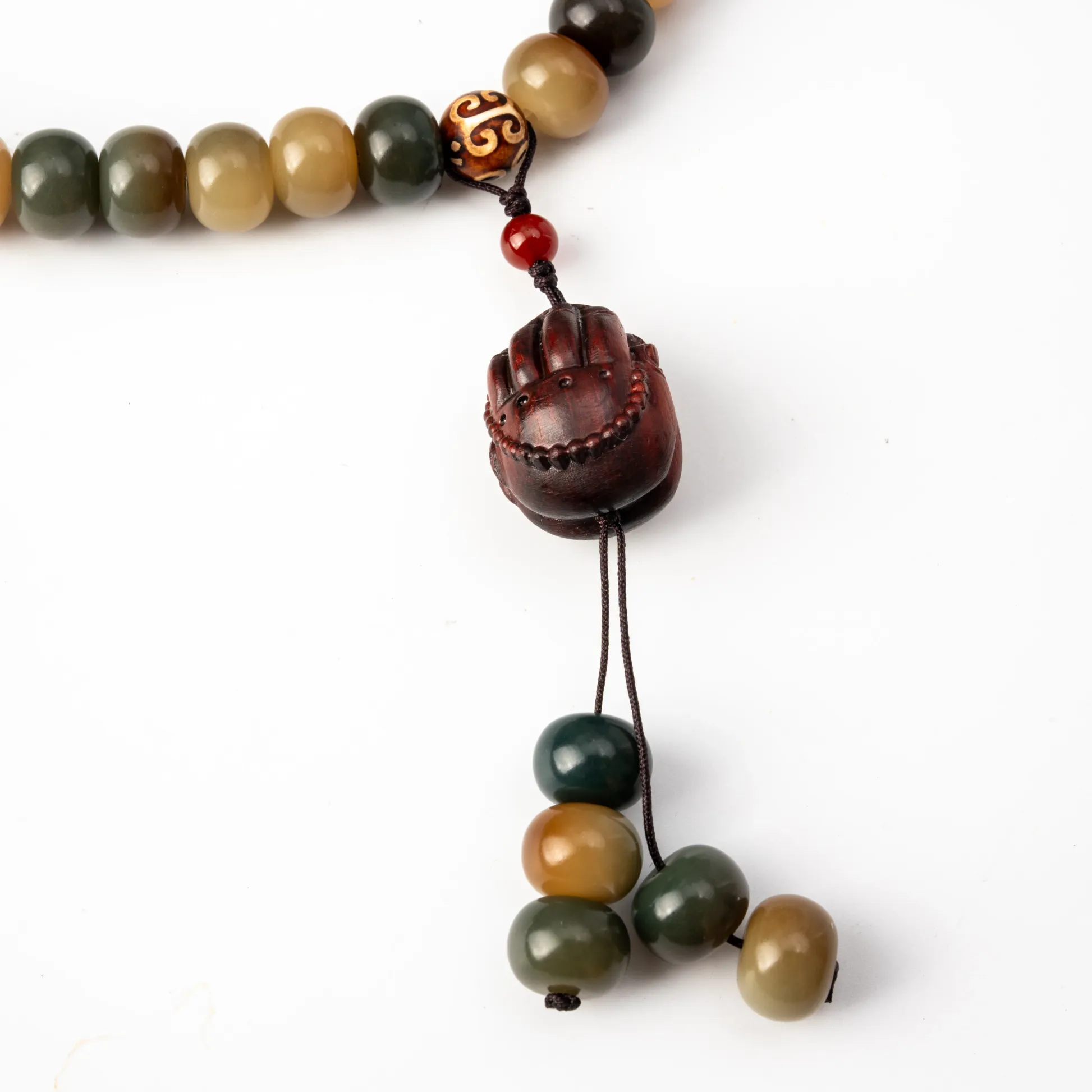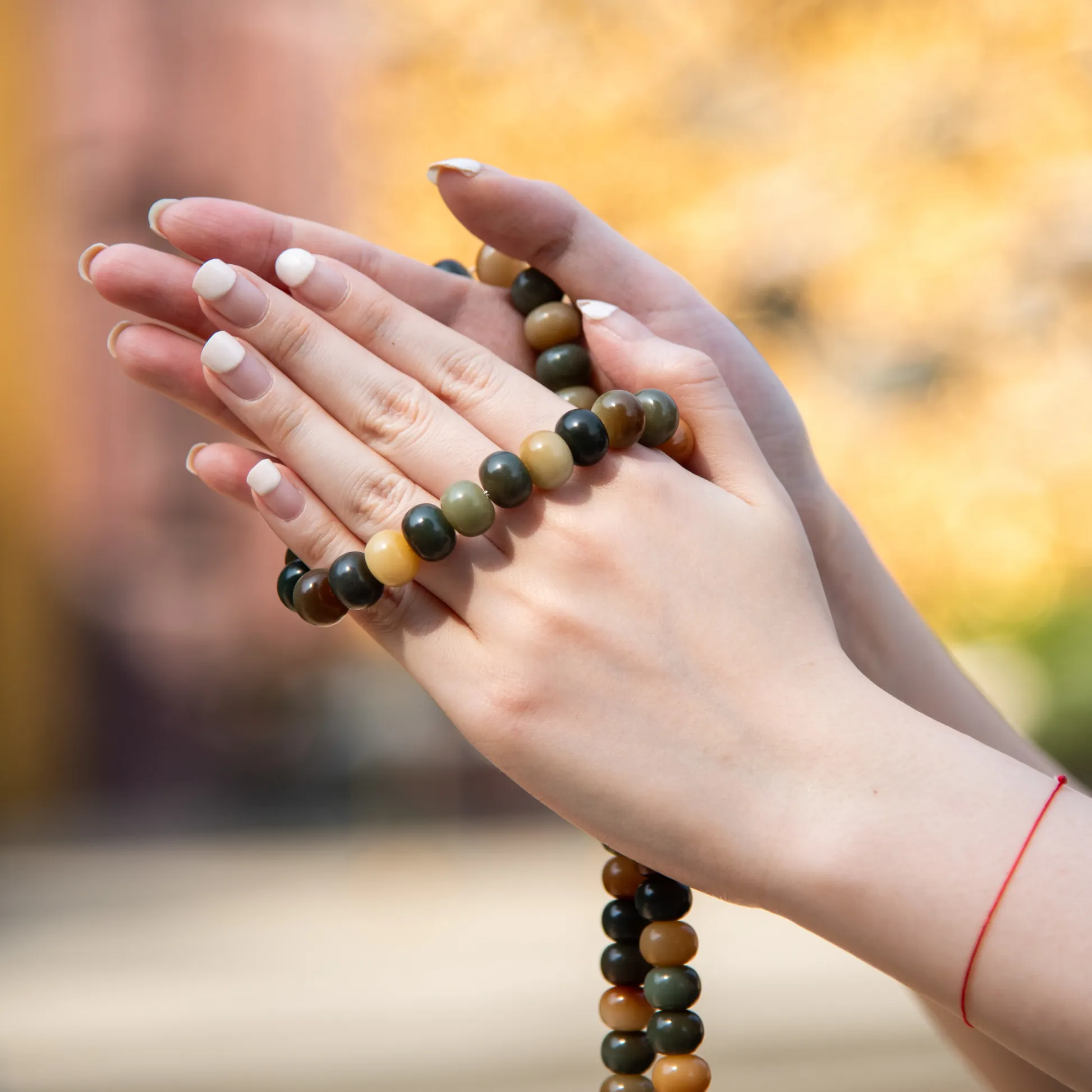 Connect deeply with tradition and mindfulness through our Grounded Wisdom Mala Beads, a sacred piece designed for meditation, prayer, and daily grounding. This mala is meticulously hand-strung with 108 natural stone beads in earthy hues of olive green, golden yellow, deep brown, and amber, reflecting the steady, grounding energy of nature.